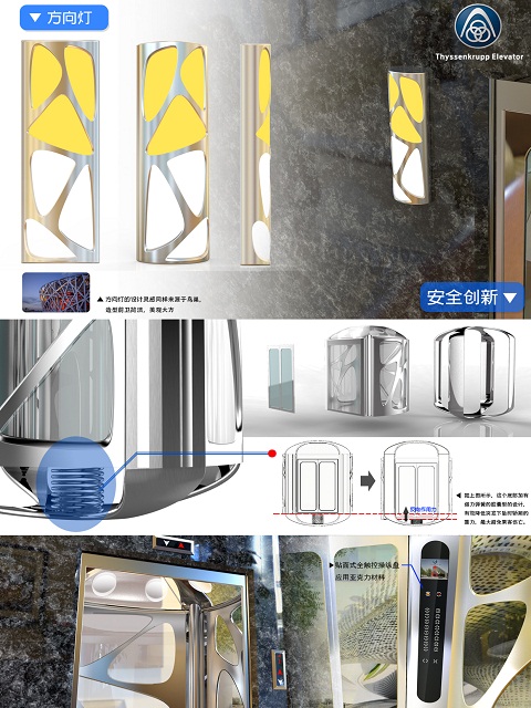 今年六月中旬,蒂森克虏伯(中国)电梯公司发出了校园电梯轿厢创意设计的项目征集活动,全国各大赛区共227所高校应邀参加创意大赛,各高校积极筹备,选手发挥了天马行空的想象,对未来电梯功能外形以及运行模式做出了大胆的创新。九月中旬,各分赛区比拼结果出炉,我院蓝岛创行队获得了华东赛区第一的好成绩,也为征战全国决赛奠定了基础。决赛过程中,各个高校代表队也卯足了劲从各个方面展现了自己的创意和与众不同。蓝岛创行队成员对电梯轿厢的安全性和外形美做足了功课,以胶囊+鸟巢的创意外形和独有的工程力学安全设计使轿厢在保障安全性能的同时,展现中国古代园林艺术中的镂空设计和现代简约之美。为了更直观展现作品的设计,他们充分发挥学院优势,3D打印了一个电梯模型,获得了评委以及场内高校同学的高度评价。