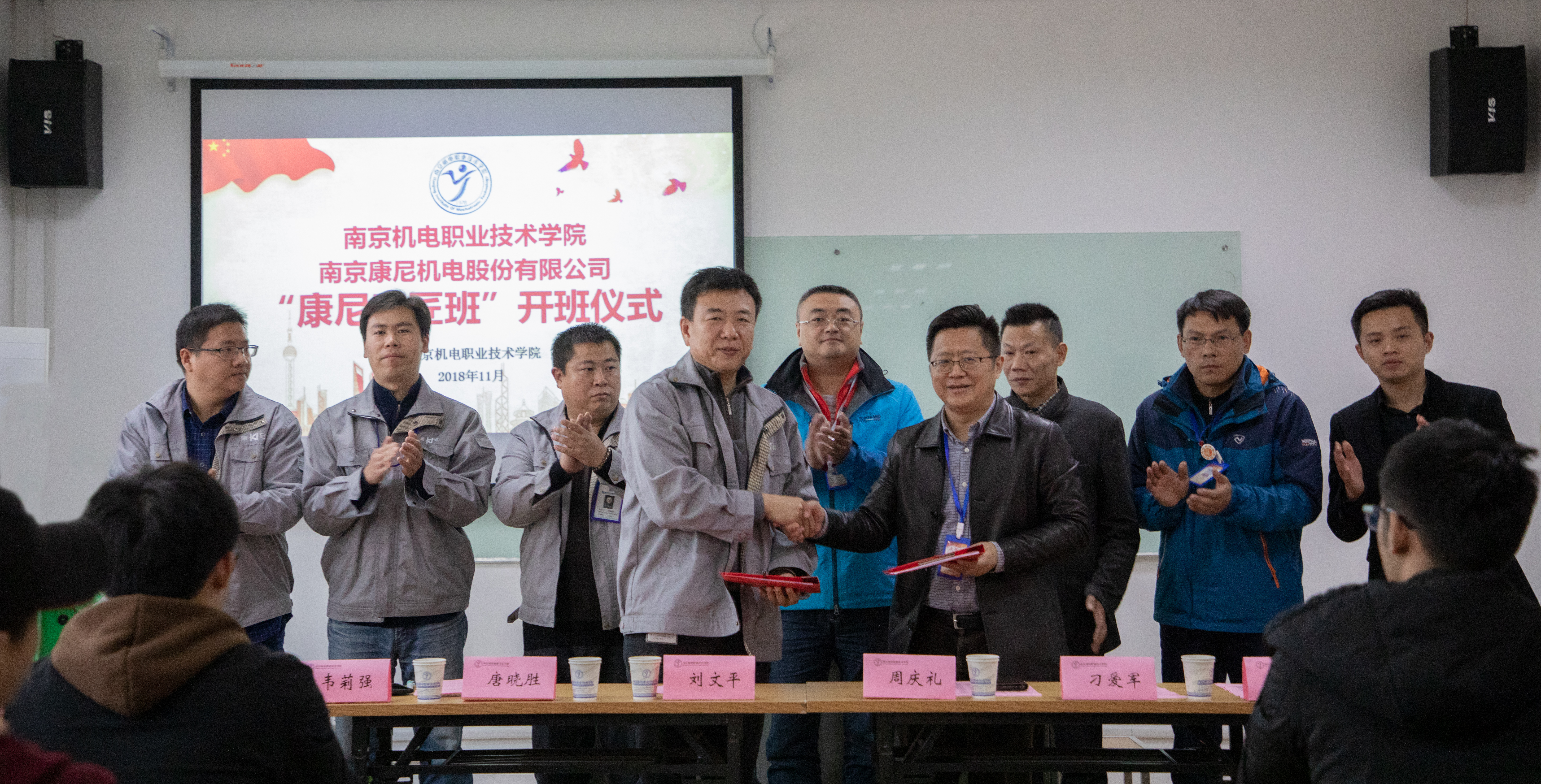 为弘扬大国工匠精神,强化学生专业技术,提升学生职业素养。11月27日,校企联合培养的“康尼工匠班”在幻影网页版登录入口_幻影(中国)举行开班仪式。南京康尼机电股份有限公司副总裁、轨道交通事业总部总经理刘文平,轨道交通事业部总经理助理唐晓胜、综合管理部部长韦莉强、设计管理部部长卫晓勇、人力资源主管王尧,我院党委书记、院长周庆礼,副院长刁爱军,学生工作处处长张宝中、自动化工程系主任范世祥、党支部副书记高水冕出席开班仪式。开班仪式由科研及校企合作处处长李木香主持。
