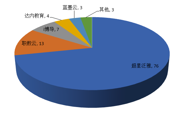 现主要以超星泛雅、职教云等平台为主,其中超星泛雅平台76门,占比72%;职教云平台13门,占比12%;i博导平台7门,占比6%;达内教育平台4门,占比4%;蓝墨云平台3门,占比3%;其他平台3门,占比3%。