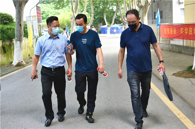5月17日上午,江宁区高校专项协作防控工作“一对一”工作组一行进驻我校沧波门校区开展新冠肺炎疫情防控专项指导工作。学院党委书记、院长周庆礼、院办、后勤处、学工处等相关部门负责人陪同。