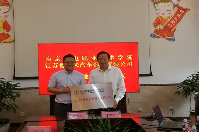 随后,学院一行5人在泰兴市高新技术开发区管委会副主任邱明波的带领下分别前往苏德福来汽车部件有限公司、江苏佳佩环保机械设备有限公司进行校企合作专题对接活动。学院领导与企业领导就人才培养、项目合作等校企合作事宜进行了深入的交流,初步达成合作意向。学院分别与两家公司签订《就业创业实习实践基地建设协议》,并向两家公司授予“幻影网页版登录入口_幻影(中国)大学生就业创业实习实训基地”铜牌。