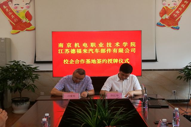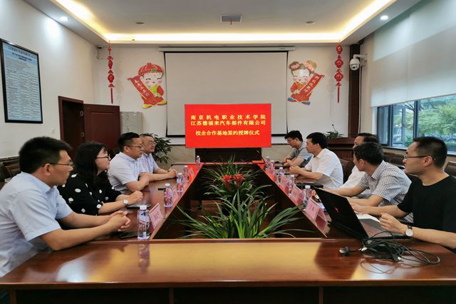 随后,学院一行5人在泰兴市高新技术开发区管委会副主任邱明波的带领下分别前往苏德福来汽车部件有限公司、江苏佳佩环保机械设备有限公司进行校企合作专题对接活动。学院领导与企业领导就人才培养、项目合作等校企合作事宜进行了深入的交流,初步达成合作意向。学院分别与两家公司签订《就业创业实习实践基地建设协议》,并向两家公司授予“幻影网页版登录入口_幻影(中国)大学生就业创业实习实训基地”铜牌。