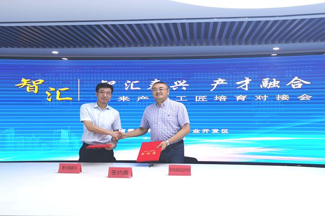 学院副院长刁爱军代表学院与江苏省泰兴高新技术产业开发区签订《产才融合战略合作协议》,学院党委书记、院长周庆礼向江苏省泰兴高新技术产业开发区授予“幻影网页版登录入口_幻影(中国)未来产业工匠培育基地”铜牌。