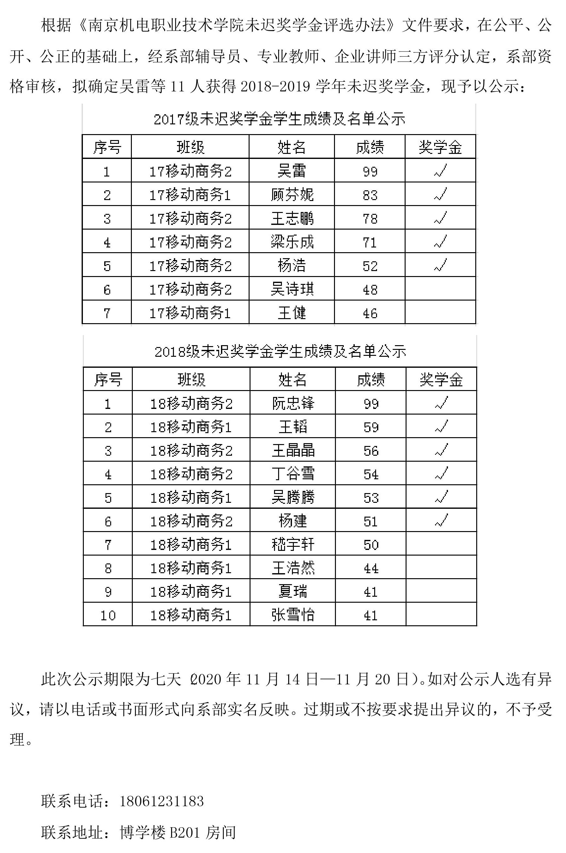 2018——2019学年移动商务专业未迟奖学金名单公示