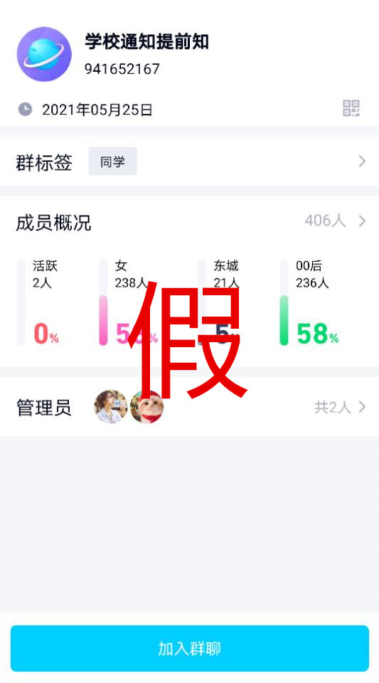 1、不法分子直接在QQ内搜索学校的群聊关键字,即可出现大量公开的群聊信息,申请后方可进入。
