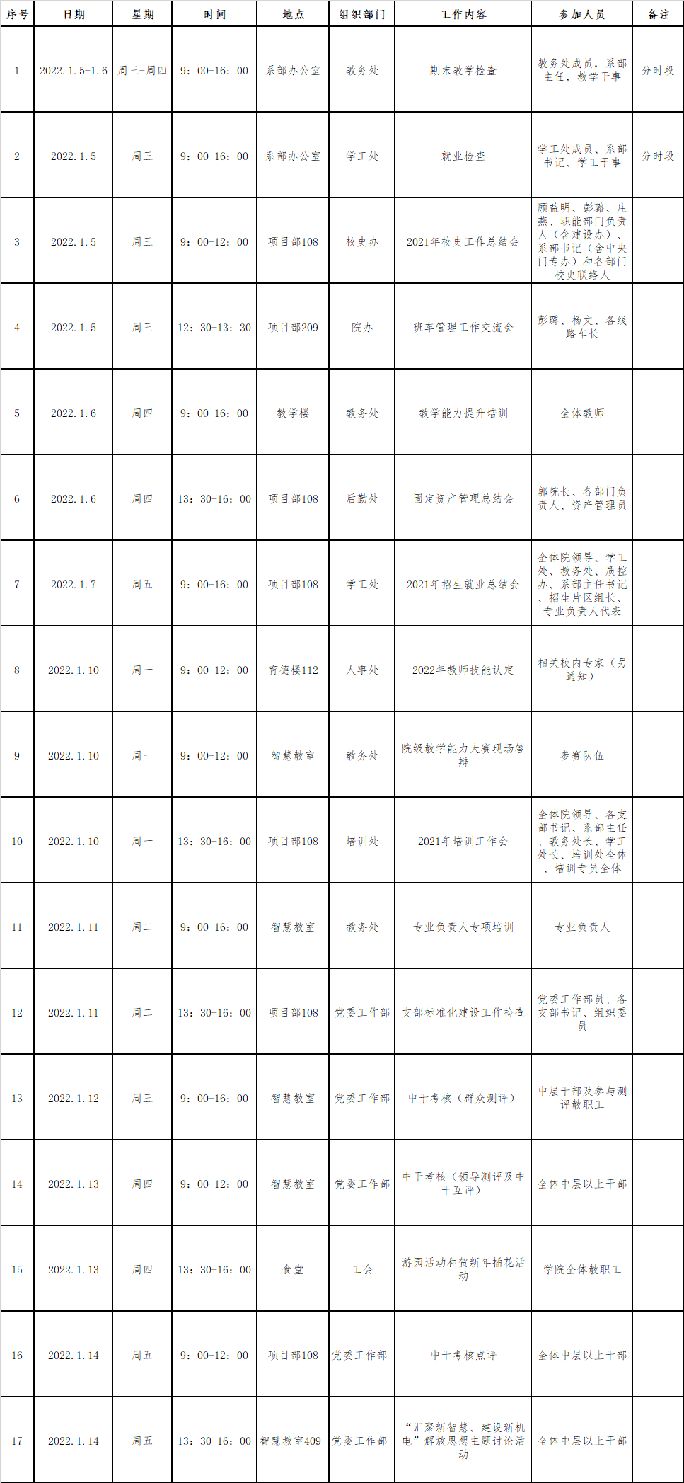 临近期末,根据学院教学计划安排,各系部已完成期末考试工作,希望系部、职能处室认真细致地做好期末各项收尾工作。为保障期末工作顺利有序进行,各部门需严格执行学院期末工作相关安排,具体内容通知如下: