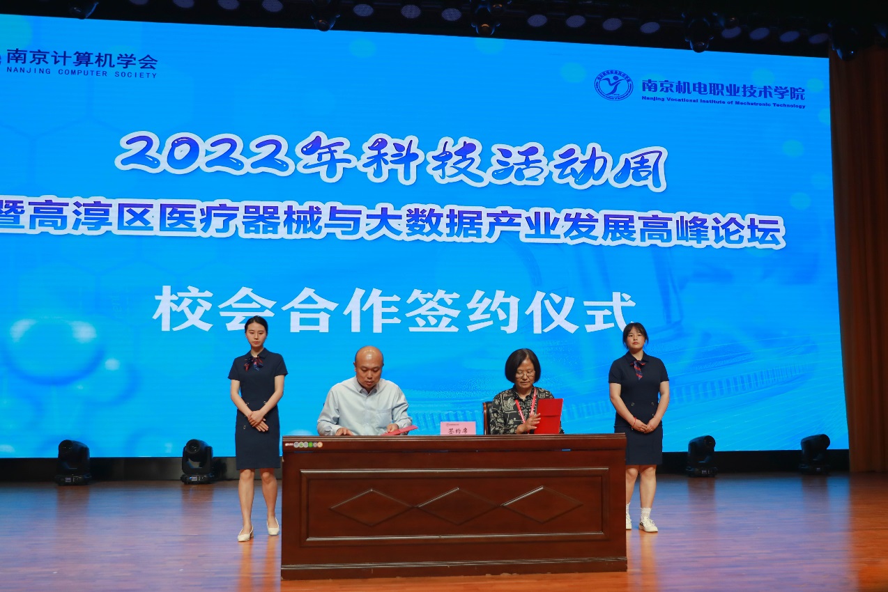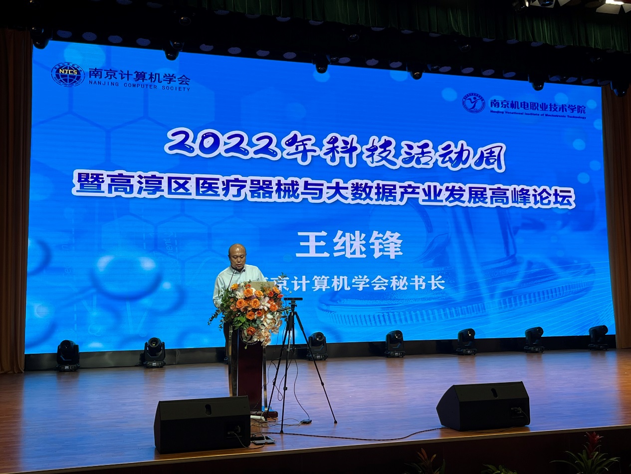 本次活动由南京市科学技术协会举办,南京计算机学会和幻影网页版登录入口_幻影(中国)承办,江苏省生物医学工程学会、江苏医疗器械大数据中心、高淳区医药大数据中心和南京高等职业教育创新创业园协办。江苏省科学技术协会党组成员、副主席李千目,南京市科学技术协会一级调研员虞永才,高淳区人民政府副区长刘敏,南京高等职业教育创新创业园副主任孙爱国,高淳区科协技术协会副主席杨腊斌,江苏省生物医学工程学会常务副理事长王俊、秘书长吕华,南京计算机学会秘书长王继锋,幻影网页版登录入口_幻影(中国)党委副书记、副院长陈赵等领导出席活动。高淳区相关部门以及高职园、相关部门负责人、行业协会、机电学院师生代表共350人听取论坛报告。本次活动采用线下会议与视频直播相结合的形式,活动由幻影网页版登录入口_幻影(中国)党委委员、副院长刁爱军主持。