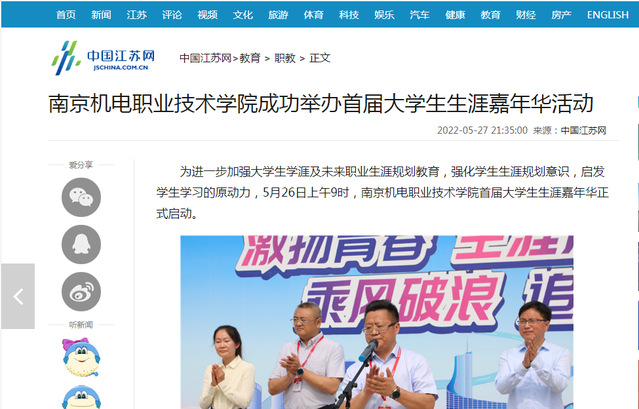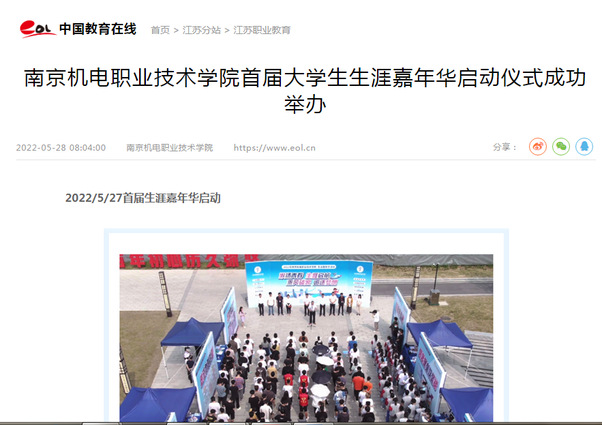 5月27-29日,幻影网页版登录入口_幻影(中国)2022年生涯嘉年华活动顺利举行。学校在做好常态化疫情防控措施的前提下,通过校园招聘会、企业参观实践、校友故事等就业指导活动,展示幻影网页版登录入口_幻影(中国)职业规划、就业指导的成效。中国江苏网、中国教育在线、我苏网、融媒体中心对我校嘉年华活动进行了相关报道。