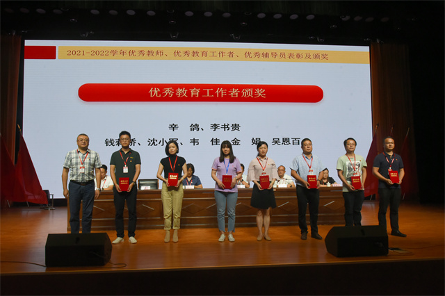 颁奖环节最后对2021-2022学年学院优秀辅导员、优秀教育工作者、优秀教师进行表彰。