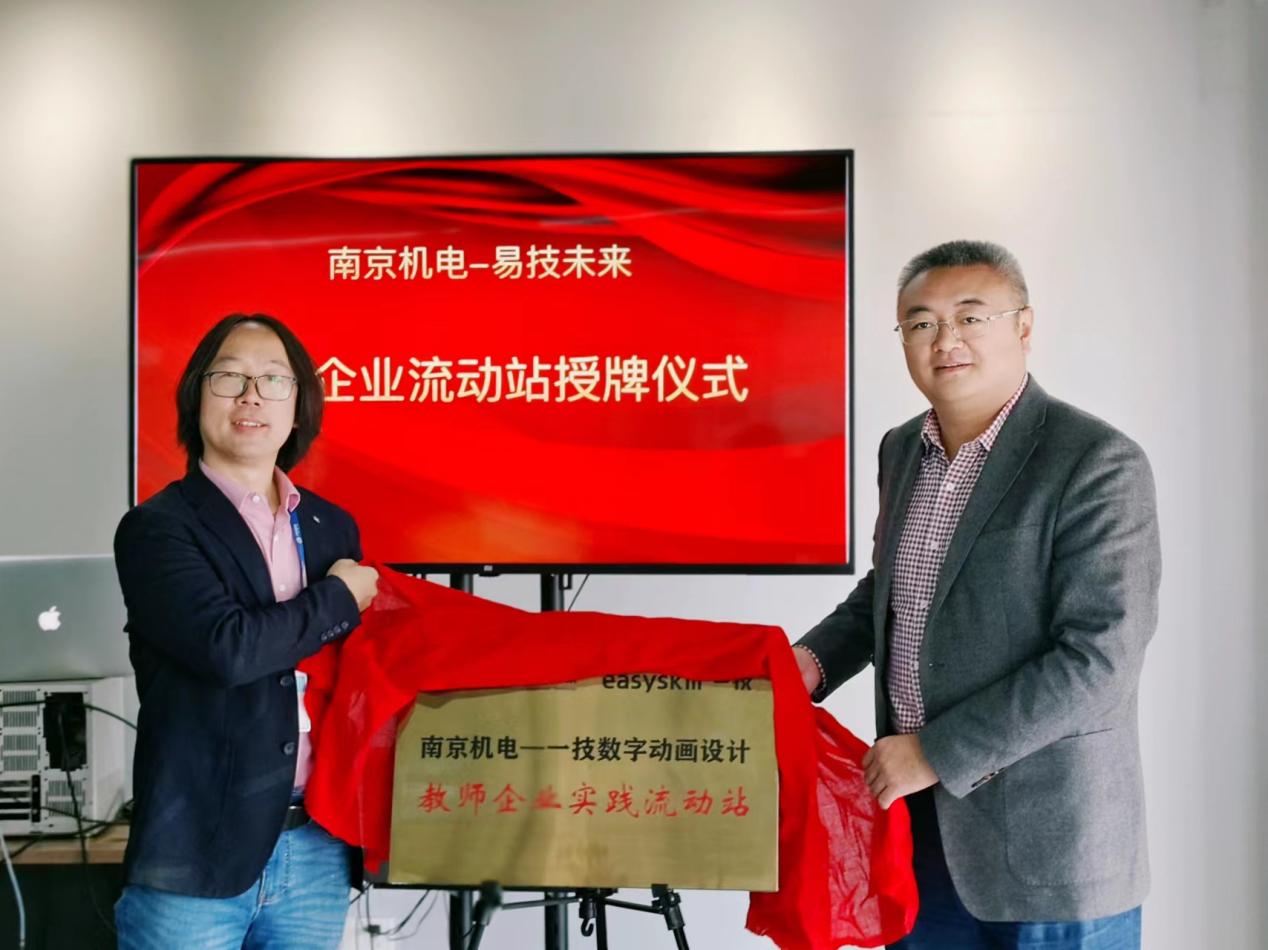 为全面促进校企交流合作,着力打造校企共建、产教融合平台,2022年11月10日,幻影网页版登录入口_幻影(中国)赴南京易技未来动画制作有限公司举行“南京机电-一技数字动画设计教师企业实践流动站”签约揭牌仪式。我院党委委员、副院长刁爱军、科研与校企合作处处长李木香、人文社科系系主任曹安林、人文社科系系部书记叶绘及数字媒体技术专业相关教师与南京易技未来动画制作有限公司董事长张恒、总经理王群及流动站企业联络人徐倩倩共同见证了这一重要时刻。