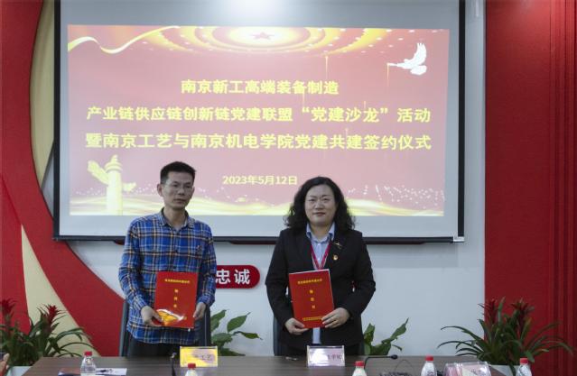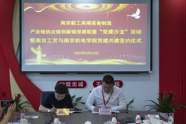 为深入学习贯彻党的二十大精神,落实中共中央办公厅、国务院办公厅印发的《关于深化现代职业教育体系建设改革的意见》要求,进一步推动校企高水平党建共建,5月12日,学校和南京工艺装备有限公司在学校高淳校区举办党建共建签约仪式。
