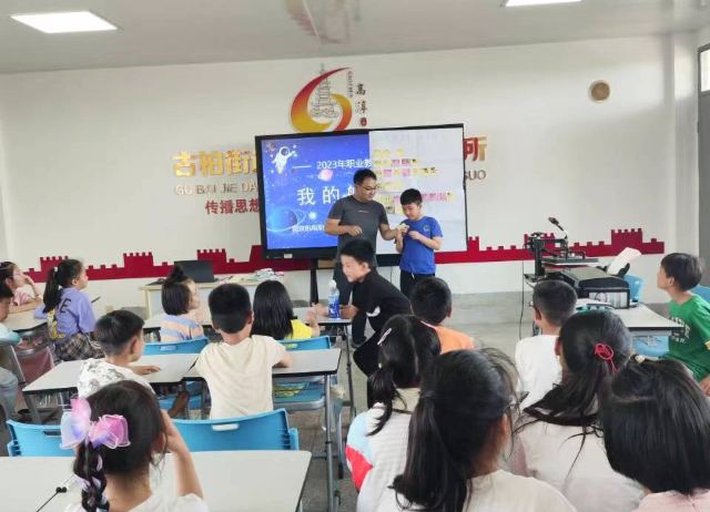 为全面展示我校职业教育的办学特色,营造全社会关注职业教育、重视职业教育的良好氛围,我校于5月28日在高淳区古柏小学开展2023年职业教育创新周活动。本次活动由幻影网页版登录入口_幻影(中国)主办,高淳区古柏小学承办,古柏小学、宝塔小学、滨湖小学等共6个班学生参加了本次活动。活动以“我的航天梦”为主题,由蓝岛创客空间主任王国珍带队,蓝岛创客空间教师黄克瑶、候俊、朱妍焘以及双创班的学生共同前往。