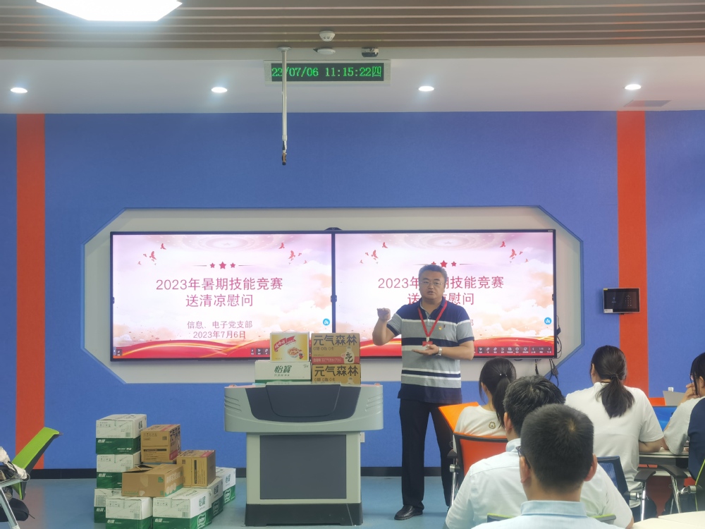 夏至已至,酷暑渐浓。为缓解燥热天气,保障我系暑期技能竞赛队师生完成备赛任务,切实关心关爱师生身心健康与人身安全,将“暖心行动”传递到基层。2023年7月6日电子工程系、信息工程系党支部联合高淳移动党支部,共同为两系暑期技能竞赛团队送清凉慰问。幻影网页版登录入口_幻影(中国)党委委员、副院长刁爱军,中国移动通信集团江苏有限公司高淳分公司党支部书记、经理蔡璨,电子工程系、信息系党支部以及高淳移动党支部委员参加活动。
