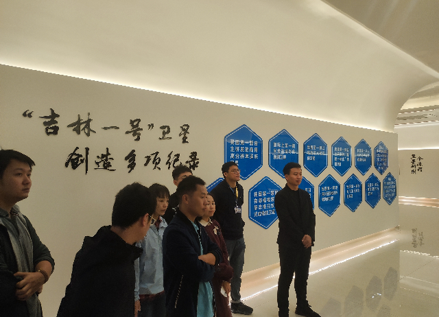 在现场参观中,长光卫星技术股份有限公司的引导员介绍了长光卫星的发展历程以及“吉林一号”卫星的光荣事迹。在引导员的带领下,卫星团队还参观了卫星装配加工方式、装调测试和设计输出等过程。