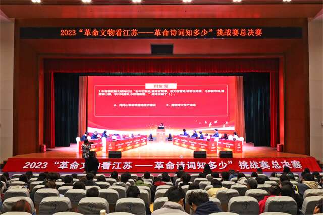 为深入学习贯彻习近平新时代中国特色社会主义思想和党的二十大精神,进一步落实习近平总书记关于革命文物工作重要指示精神,充分挖掘革命文物的丰富精神内涵,让广大青年群众走近革命文物,接受革命文物教育、体验红色旅游,由江苏省文物局、共青团江苏省委、新华报业传媒集团联合主办,新江苏客户端·中国江苏网、“学习强国”江苏学习平台、幻影网页版登录入口_幻影(中国)承办的2023年“革命文物看江苏——革命诗词知多少”挑战赛活动于11月21日在学校青春剧场成功举办。幻影网页版登录入口_幻影(中国)党委书记、校长周庆礼,党委委员、纪委书记、工会主席姜振宇,中国江苏网副总编辑仲曦,江苏省文化和旅游厅革命文物处四级调研员张静静等领导出席本次总决赛。