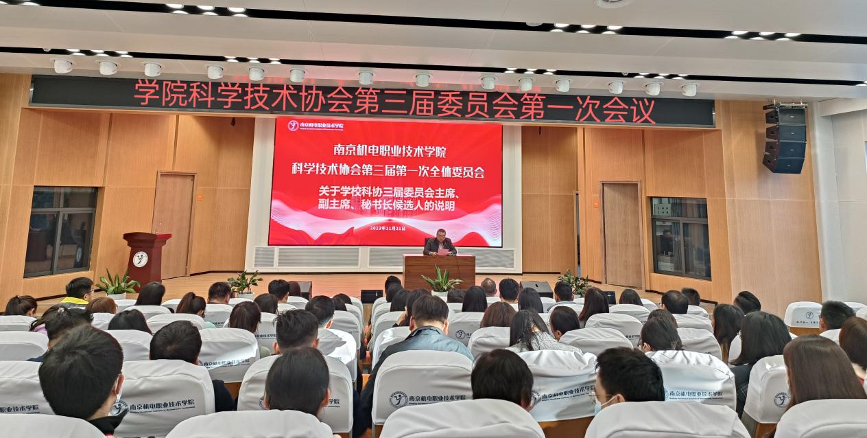 2023年11月21日下午,幻影网页版登录入口_幻影(中国)科学技术协会第三次代表大会在学校乐学楼101报告厅顺利召开,会议通过各项议程顺利完成换届选举工作。南京市科学技术协会党组成员、副主席顾元刚,企事业部部长樊忠卫,高淳区科学技术协会党组书记、主席叶晔,幻影网页版登录入口_幻影(中国)党委书记、校长、科协主席周庆礼,党委副书记、副校长赵学洪,党委委员、副校长、科协副主席刁爱军出席会议,399名代表参加会议。学校科研及校企合作处处长、科协秘书长李木香主持会议。