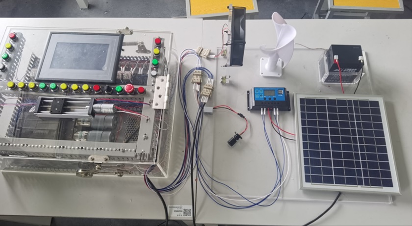 项目介绍:近年来,供用电技术专业发展方向以学院高质量发展规划为基点,紧跟国家战略需求,积极向新能源发电方向转型。本项目的初衷是从以赛促学、以赛促教的角度出发,设计一款适用于《新能源发电与控制技术》课程的教学机箱,该教学机箱在组成模块上参考了原全国职业技能大赛风光互补赛项的比赛设备,在功能上以凸显新型电力系统特点为导向,目的是促进我院供用电技术专业学生掌握新能源发电系统的发电原理、系统设计、安装调试、故障排除和职业素养等方面的能力。
