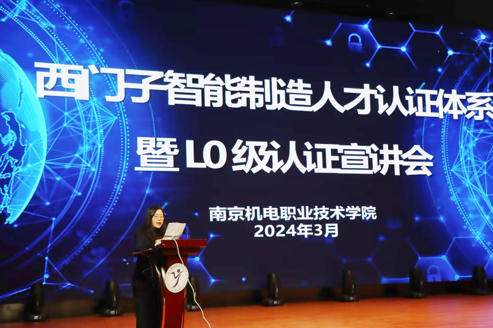 为大力推动产教融合、校企合作,创新应用型人才培养模式,更好提升学生技能水平,促进高端对口就业。3月19日,我校自动化工程系(智能制造学院)在青春剧场举办幻影网页版登录入口_幻影(中国)“西门子智能制造人才认证体系暨L0级认证”宣讲会。我校自动化工程系主任张海红、副主任顾晟吉及西门子(中国)有限公司创新与人才发展部市场拓展经理孙宏涛、技术研发专家李瑊、业务发展经理刘吟、市场推广经理王亚楠4名企业专家出席,自动化工程系全体师生参加活动。活动由电气自动化技术专业负责人李银露主持。