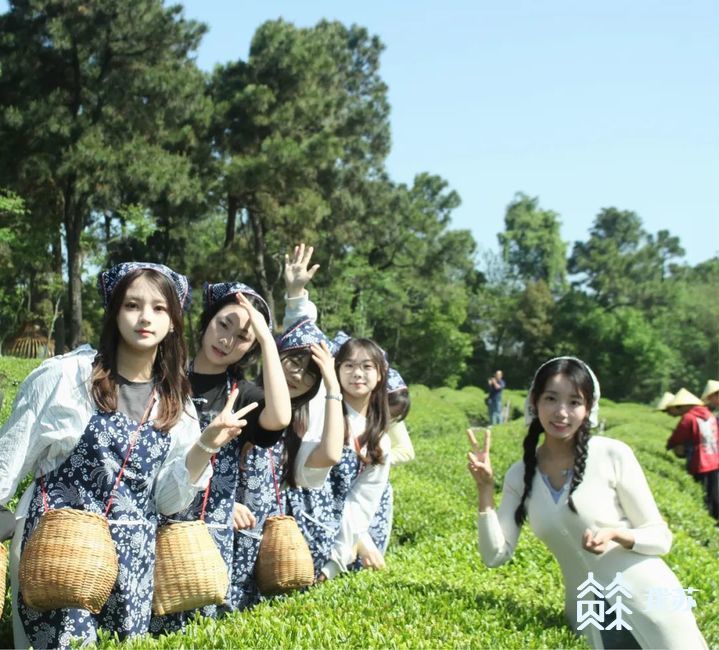 谷雨前后的茶,色泽翠绿,叶质柔软,被称为雨前茶,是茶中精品。只见,同学们头戴草帽、身挎竹筐,三三两两围在一起认真的听老师傅讲采茶的要领和标准。这就体验起来了,老师傅布置任务:采摘一芽一叶。可以看到,一个芽头里面包含一个已分化、尚未彻底展开的叶片。