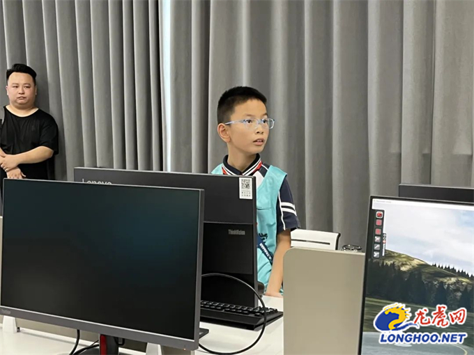 模拟飞行中,同学们先利用无人机模拟飞控软件在电脑上进行模拟飞行,随后在无人机应用技术专业教师顾老师的指导下亲自拿着遥控器进行室内无人机操控练习。刚开始,不少同学在操控无人机时出现了失误,但随着不断练习,部分同学已经可以较为平稳地操控无人机,感受到了满满的成就感。来自南京市高淳区古柏中心小学的两名同学表示,本次活动让他们感受到亲身实践无人机操控带来的快乐。