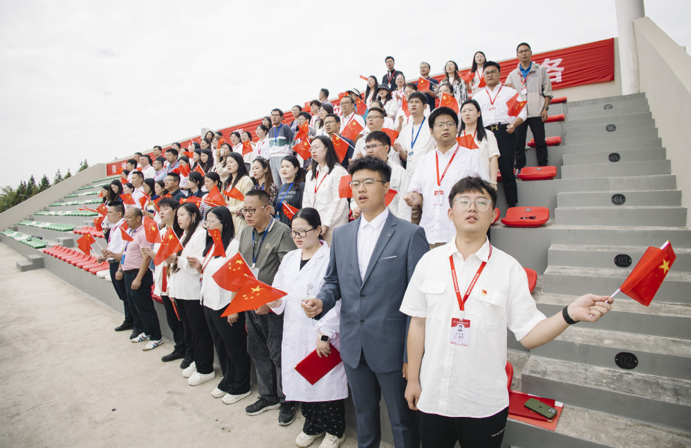 “五星红旗迎风飘扬,胜利歌声多么嘹亮”,今年是新中国成立75周年,老师和同学们精神饱满,眼中闪烁着自豪的光芒,用激昂的旋律和嘹亮的歌声,表达对祖国深深的热爱与赞美。大会在昂扬的歌声中落下帷幕。