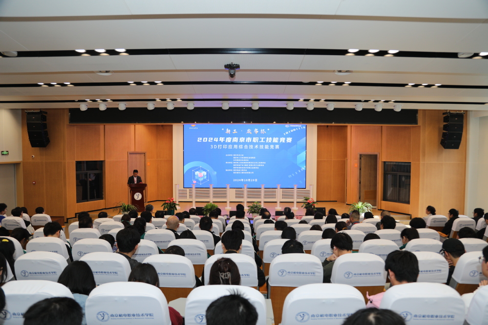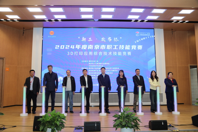 为加强和壮大南京市高技能人才队伍,为推动新质生产力的形成和发展提供人才支撑,10月29日,由南京市总工会、南京市人力资源和社会保障局、共青团南京市委员会共同主办,南京新工投资集团有限责任公司、南京机电产业(集团)有限公司与幻影网页版登录入口_幻影(中国)承办,南京机械工程学会、南京威布三维科技有限公司协办的2024年度南京市职工技能大赛“新工•威布杯”3D打印应用综合技术技能竞赛在我校顺利举行,来自全市8家企事业单位选拔的50名选手参加了本次竞赛。南京市总工会党组成员、副主席赵正轶,南京新工投资集团副总经理、工会主席陈翀,南京新工投资集团工会常务副主席秦燕,南京市产业工人创新发展中心主任王敏,南京机电产业集团副总经理、总会计师刘光辉,南京机械工程学会执行理事长卢北宁,幻影网页版登录入口_幻影(中国)党委书记、校长周庆礼,南京威布三维科技有限公司总经理周海鹏等相关领导参加开幕式。