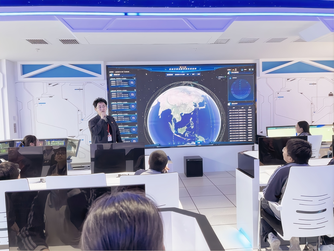 在航天科普馆,我校创客导师侯俊以生动的语言,向同学们讲解我国航天事业的蓬勃发展历程,以及我校师生牵头研制的“南京号”暨中国青少年科普卫星八一08星从研制到成功发射的全过程。学校卫星通信与导航技术专业负责人黄威为同学们演示了火箭发射的过程。同学们听得津津有味,惊叹于先进的测控设备,并纷纷表示对我国航天事业的迅猛发展感到骄傲。