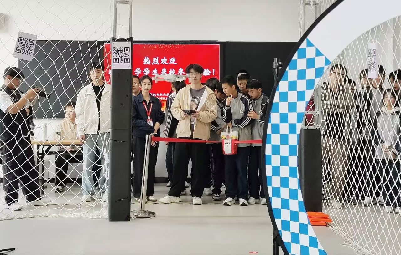在南机电-大疆无人机产业学院,在无人机专业教师的带领下,同学们进行沉浸式无人机飞行体验。这样的趣味之旅,是“双减”政策下的生动实践,让他们尽情放松身心。