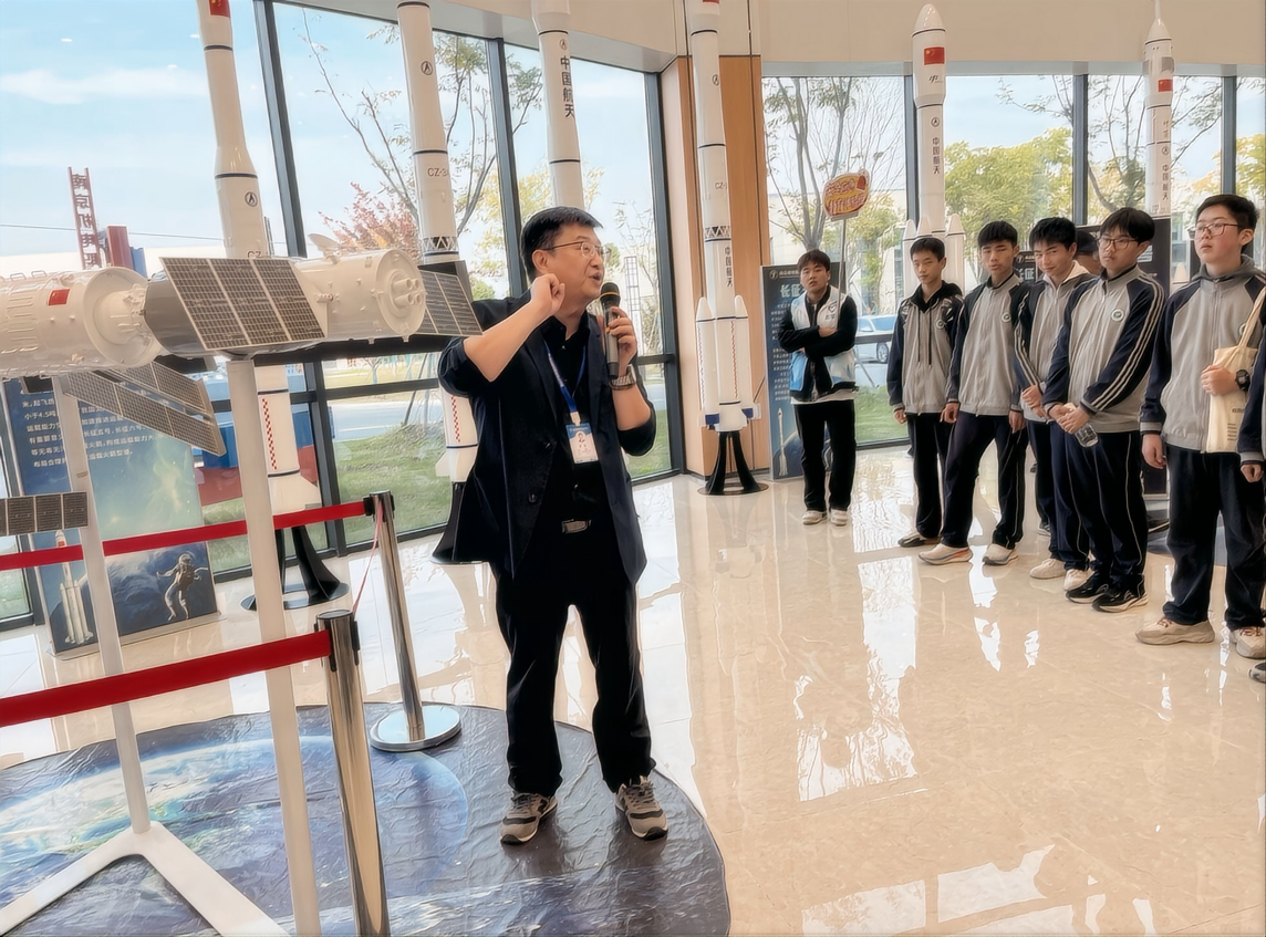 在航天科普馆,我校创客导师侯俊以生动的语言,向同学们讲解我国航天事业的蓬勃发展历程,以及我校师生牵头研制的“南京号”暨中国青少年科普卫星八一08星从研制到成功发射的全过程。学校卫星通信与导航技术专业负责人黄威为同学们演示了火箭发射的过程。同学们听得津津有味,惊叹于先进的测控设备,并纷纷表示对我国航天事业的迅猛发展感到骄傲。