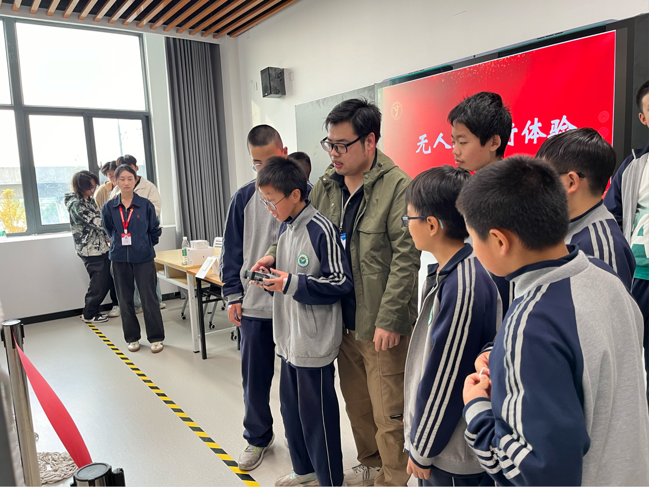 在南机电-大疆无人机产业学院,在无人机专业教师的带领下,同学们进行沉浸式无人机飞行体验。这样的趣味之旅,是“双减”政策下的生动实践,让他们尽情放松身心。