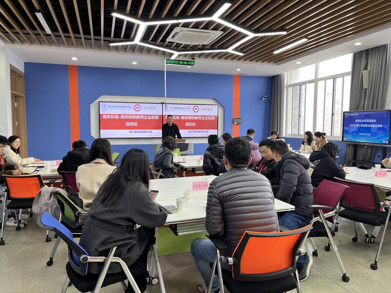 2024年12月12日上午,教师企业实践流动站2024年第三季度联合复盘交流会在博学楼410智慧教室举行。来自南机电-南钢、南机电-工艺装备、南机电-创维电器、南机电-冠盛汽配、南机电-大华等五个教师企业实践流动站的进站教师和企业导师齐聚一堂,共话教师企业实践流动站发展路径。