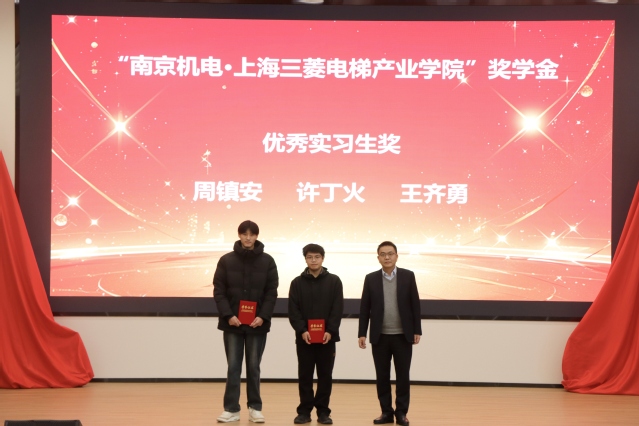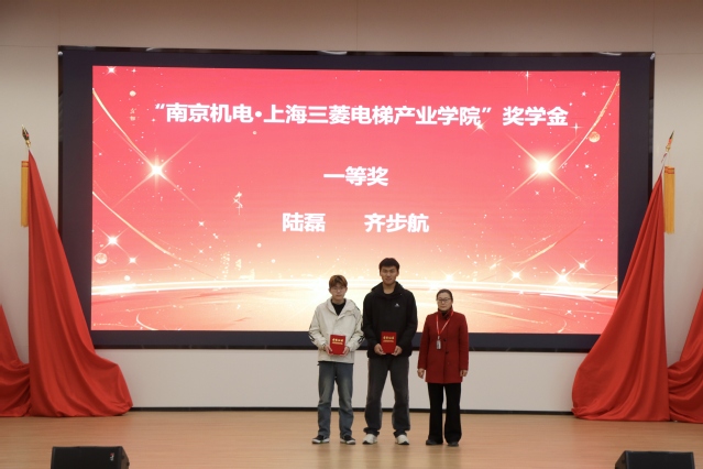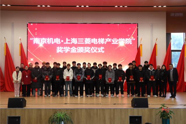 12月27日下午,自动化工程系在乐学楼101报告厅举办“南京机电·上海三菱电梯产业学院”奖学金颁奖仪式。上海三菱电梯有限公司江苏大区维保总监蒋继荣,江苏分公司综合管理部经理张愉,华东一区培训分中心教务长秦勇泉,自动化工程系副主任张海红,党支部副书记杨军,教学副主任顾晟吉出席仪式。在上海三菱电梯有限公司江苏分公司岗位实习的2022级优秀实习生、2023级机电一体化技术专业“三菱班”全体学员、辅导员和2024级机电一体化技术专业全体学生等近四百人参加颁奖仪式。颁奖仪式由机电一体化技术专业教师蔡新宇主持。