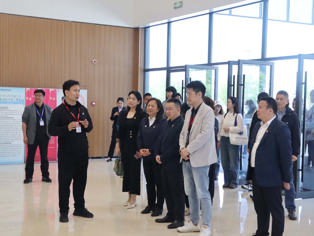 蓝岛创客空间、信息工程系主任王国珍引领党员教师参观了航天教育科普基地、卫星测控中心、非遗工坊,领导老师们详细了解了我校在航天特色教育方面的成果和实力,前来参观的领导及党员教师们对学校的航天教育建设、工匠精神教育给予了高度评价。
