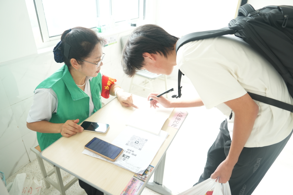 迎新前期,学生工作处提前通过推文细致讲解线上选宿流程,帮同学们扫清操作障碍;宿管阿姨也早早备好各宿舍的打扫工具,为入住做好准备。后勤处也提前部署,暑假期间启动“大干30天”专项维修攻坚行动,以最高效、最扎实的工作为迎新保驾护航。迎新现场,物业工作人员早早备好冰镇酸梅汤及饮用水,设置免费畅饮点,为奔波的新生及家长驱散暑气;水果、小零食组成的补给区也人气十足,让大家在办理手续间隙感受校园暖意。住宿服务同样高效贴心。宿管阿姨全程引导新生办理入住,耐心解答宿舍设施使用、生活服务等疑问,用亲切态度缓解新生陌生感。工程师傅们在楼宇间随时待命,第一时间响应家具松动、水电故障等零星维修需求,保障住宿安全。保洁阿姨则不间断巡视公共区域,及时清理垃圾、擦拭设施,为新生营造出整洁舒适的居住环境。