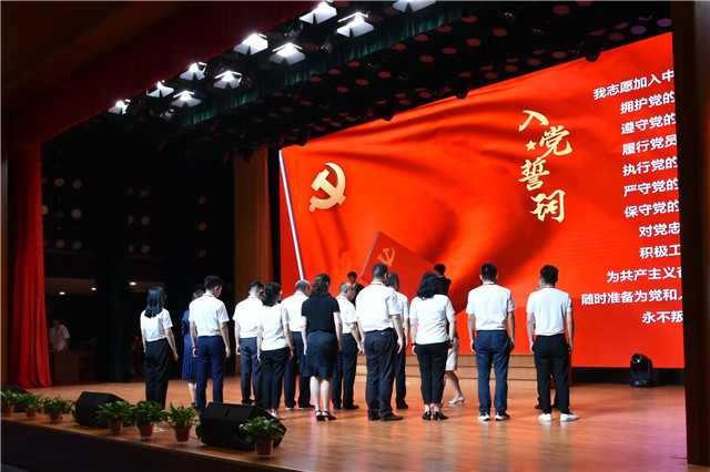 周庆礼强调对于全体机电人来讲,尤其要做到以下三点:一要解放思想。思想不牢,地动山摇。通过新的思想解放,释放新的发展能量,为学校高质量发展走在前列贡献智慧和力量。二要提升能力。有了担当的愿望,还要有担当的底气。要干一行爱一行、钻一行精一行、管一行像一行、抓一行成一行。特别是要强化专业思维、提高专业素养,成为本职岗位的行家里手;特别是要提高理论学习和执行决策的能力、解决实际问题的能力、调查研究的能力、统筹协调的能力和总结提高的能力。三要形成合力。学校各部门、所有师生都是学校事业发展的一个整体,成就学校事业是全体师生的共同责任。为此,学校各级党组织和广大党员要深刻把准新时代新使命新征程,切实增强政治领导力、思想引领力、群众组织力、人心凝聚力,上下左右,四面八方、凝心聚力、同心协力,共同推进学校各项工作高标准建设,高质量发展。会上,全体党员在党委书记、院长周庆礼的领誓下,高举右拳,重温入党誓词。铿锵的誓言响彻全场,信仰的旗帜在心中高高飘扬。