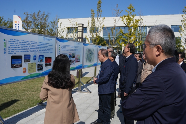 赵学洪向集团领导介绍学校迁建高淳后,主动融入区域经济社会发展大局,聚焦“四新”机电建设和学校高质量发展取得的系列成果。