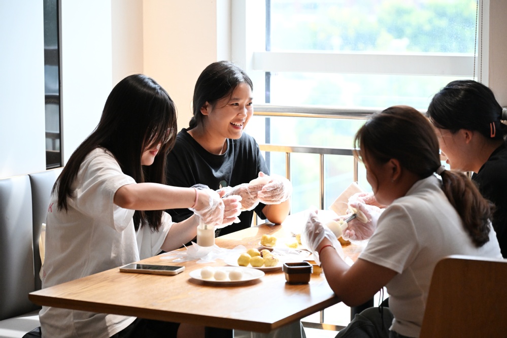 无论身在何地,中秋的明月与月饼的香气,总能勾起游子们对家乡和亲人的思念。小小的月饼精致又美味,蕴含了古人的浪漫与智慧。师生一起体验做月饼,馅料的揉搓和每一次按压都是新的尝试,通过亲手制作月饼,同学们不仅学到了月饼制作的传统技艺,还体会到了亲手制作美食的乐趣,更在合作中加深了同学间的情谊。
