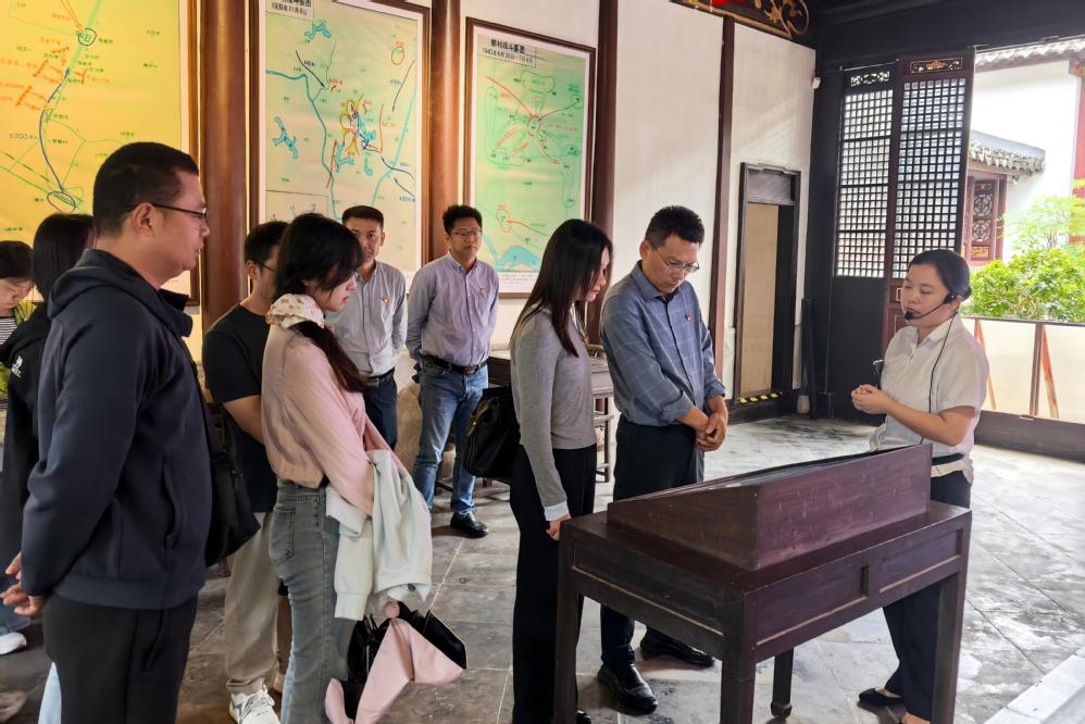 在纪念馆讲解员引导下,大家先后参观新四军江南指挥部司令部旧址、史料展览馆,通过实物、照片与文献,深刻了解陈毅、粟裕等革命前辈的斗争历程及新四军抗日事迹;参与“水西保卫战”“塘马战斗”沉浸式体验,感受烽火岁月。