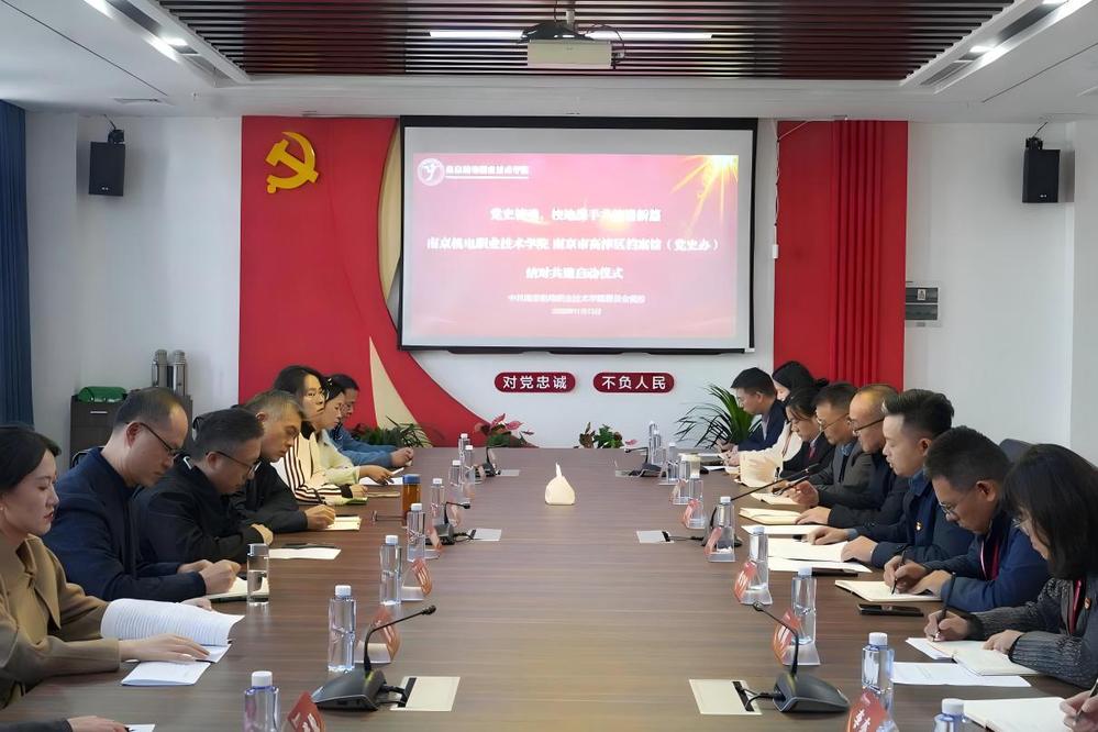 为深入推进党史学习教育常态化长效化,推动校馆资源优势互补,11月13日下午,幻影网页版登录入口_幻影(中国)党校与南京市高淳区档案馆(党史办、地方志办)结对共建启动仪式暨党史宣讲活动在学校育德楼313会议室顺利举行。南京高职园、高淳区档案馆相关领导,学校党委领导、党支部书记、师生党员代表及 “淳语学史” 高淳党史宣讲团成员共同参与仪式。