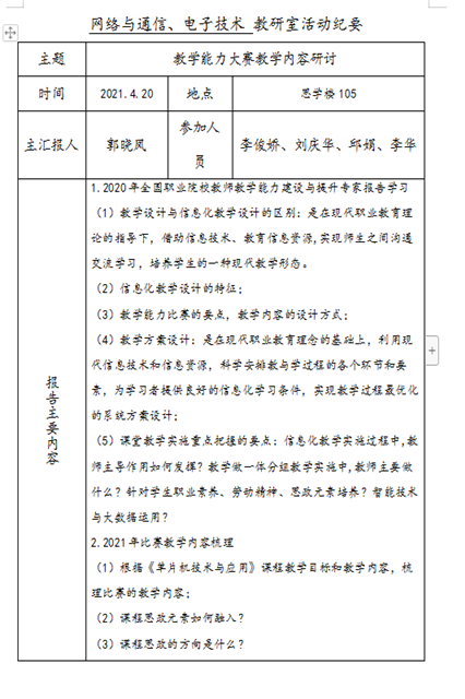 网络与通信和电子技术教研室活动:教学能力大赛教学内容研讨