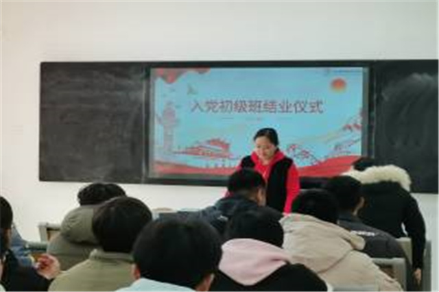结业仪式在李俊娇老师的带领下开始了,大会开始第一项议程,本次有王雨阳、周旺旺等8名同学获得了本次“优秀学员”,吴伟萍书记为这八位学员送上了优秀毕业证书。在这之后,初级班班长王雨阳同学分享了本次初级班的学习心得:作为一名当代大学生,一位努力向党组织靠近的积极分子,应该端正自己的入党动机。在讲话最后王雨阳同学也对我们提出了建议:本期的党课虽然结束了,但对于人生,对事业的学习与思考,会伴随我们继续下去。最后由吴伟萍书记给初级班成员给予一定的肯定与赞扬,并要求初级班成员要以初级班的标准去严格要求自己。并嘱托我们寒假注意疫情。