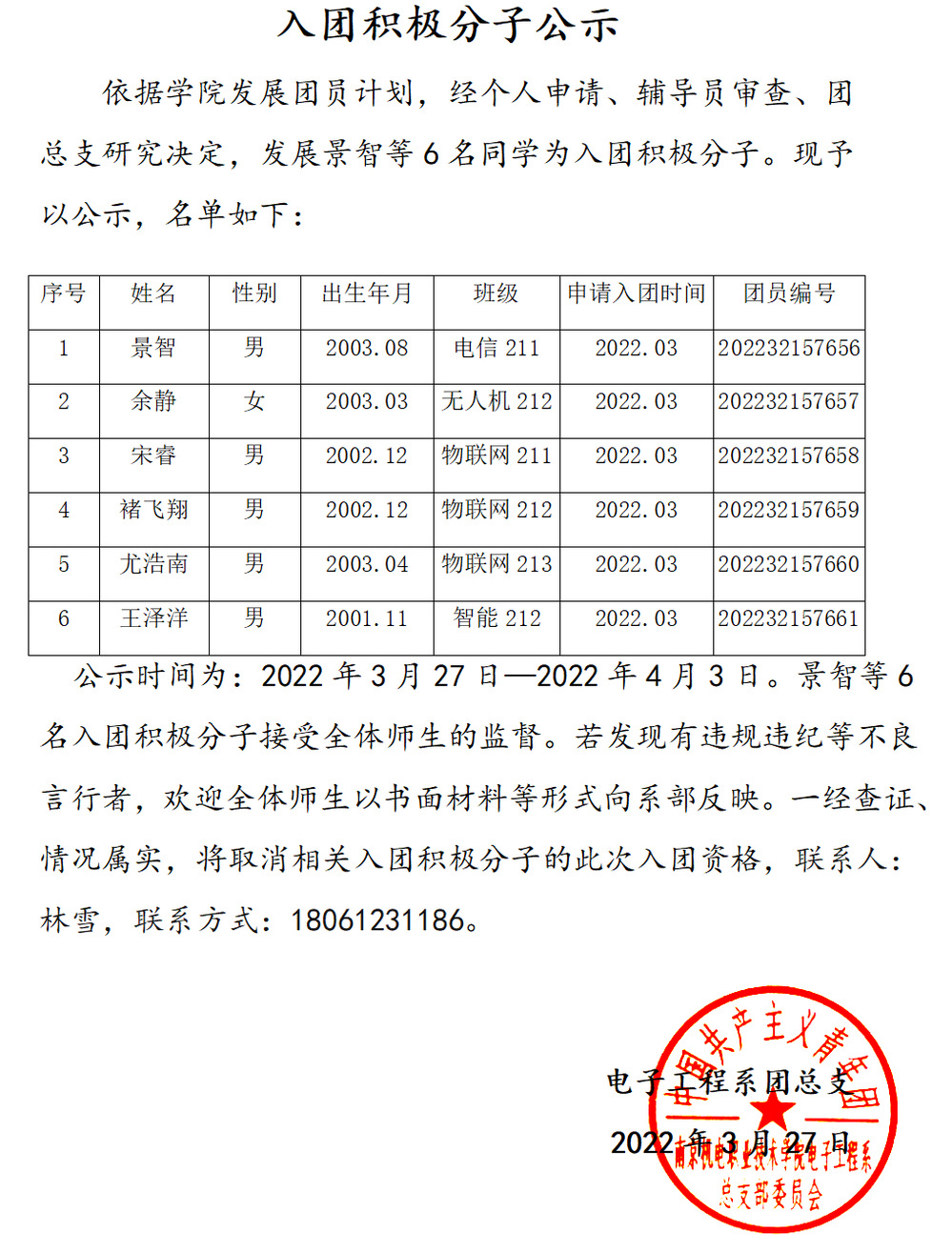 入团积极分子公示