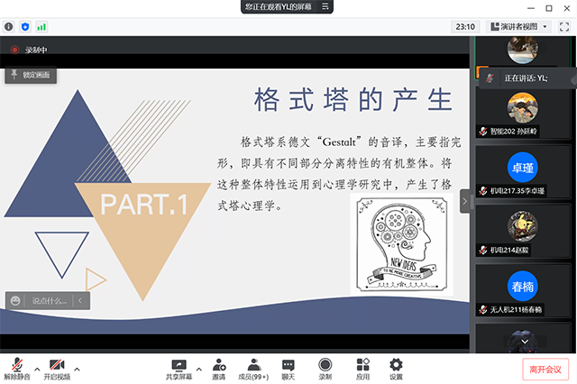 为切实加强我校心理健康教育工作,帮助学生心理骨干掌握心理健康知识和技能,树立自助互助求助意识,充分发挥朋辈心理互助作用和桥梁纽带作用,幻影网页版登录入口_幻影(中国)学生工作处大学生健康成长中心组织开展2021级心理委员正式开始。2022年3月31日18:00,由电子工程系刘依林老师主讲的“学生朋辈互助能力提升——格式塔在学生工作中的运用”专题培训在线上举办,电子工程系全体心理委员以及各系心理委员参加本次培训。
