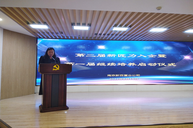 2022年8月19日下午,幻影网页版登录入口_幻影(中国)和南京新百置业公司共同打造培养的“新百新匠力订单班”第二届学员入企暨第一届继续培养启动仪式在南京中心大厦会议室举行。出席本次活动的有南京新百置业公司副总经理雷松楼、党支部书记王磊、总经理助理吴水岭、幻影网页版登录入口_幻影(中国)电子工程系党支部书记吴伟萍、自动化工程系党支部副书记高水冕、电子工程系学工干事朱新文和第二届“新百新匠力订单班”的7名导师、11名岗位教练、12名学生以及第一届新匠力学员。本次活动由新百置业公司行政人事部经理王莉主持。