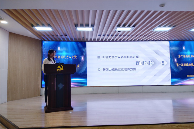 接着,公司行政人事部副经理冯红介绍《新匠力学员双规培养方案》及《新匠力学员继续培养方案》,此方案对学员的职业规划做了详细的介绍。