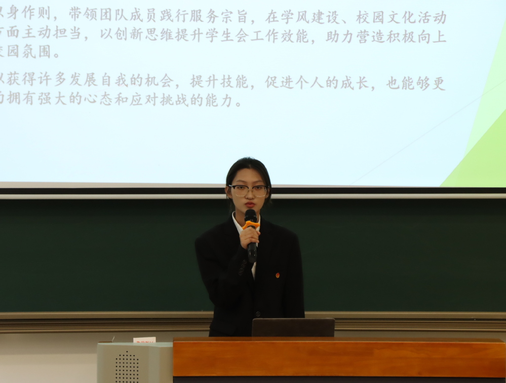 最后,党支部副书记叶绘作了总结讲话。她强调,学生会要始终坚持“全心全意为同学服务”的宗旨,不断加强思想建设与组织建设,引领广大青年学子积极投身学校发展,贡献青春力量。