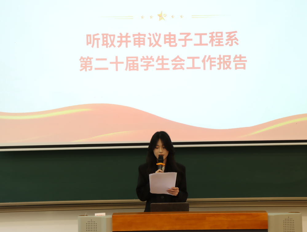 5月14日下午,电子工程系第六次学生代表大会在勤学楼102胜利召开。本次大会汇聚了系党支部副书记叶绘、学生会指导老师朱倩、团委书记魏澜、心理健康指导老师禹花宁以及系部学生会成员、各班班长及学生代表的积极参与,会议旨在完善工作交接,公开、公正地选拔出电子工程系未来的主席团人选。