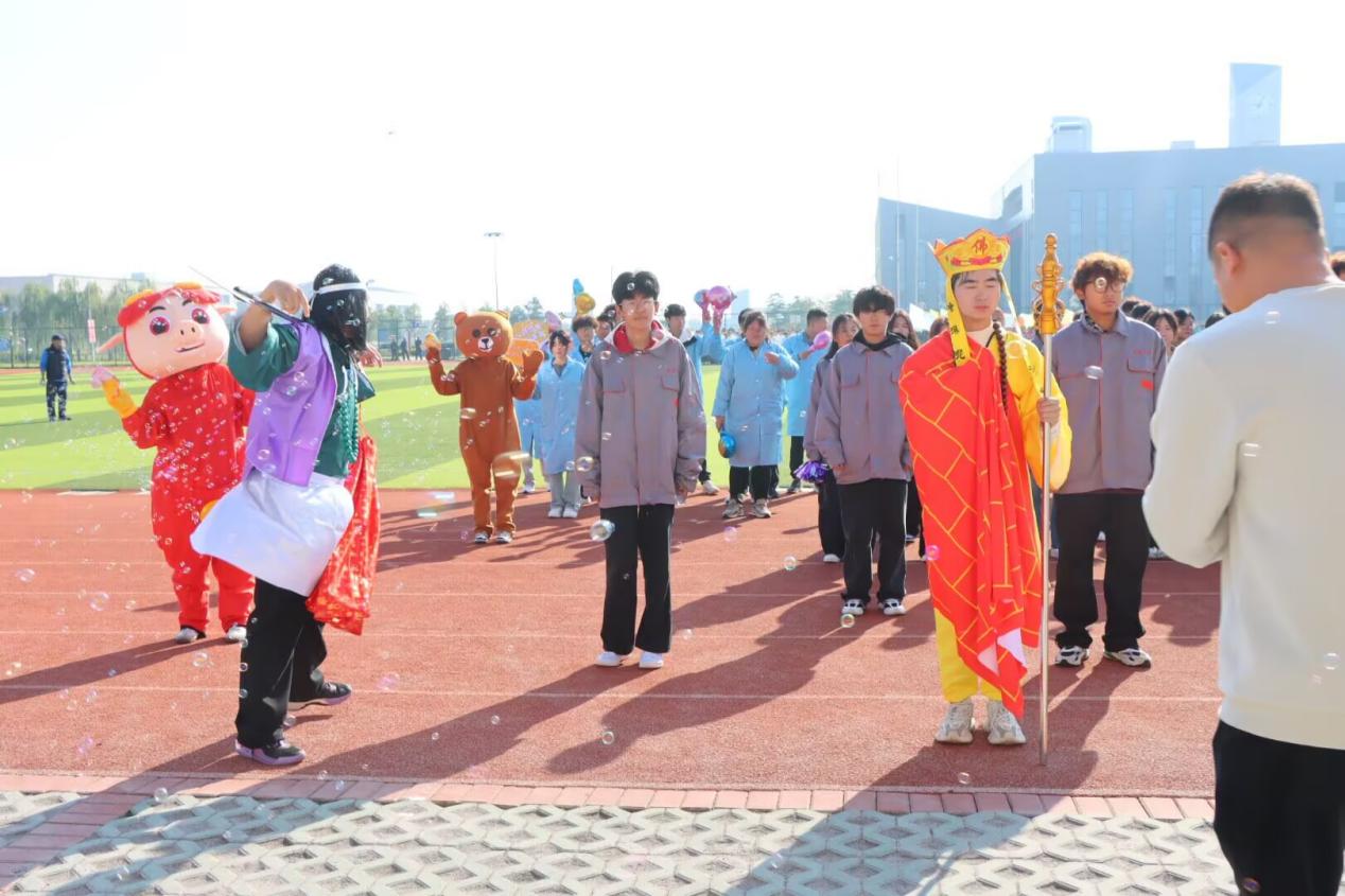 开幕式上,电子工程系方阵创意十足、亮点纷呈。队员们手持彩色烟雾棒列队入场,配合泡泡机营造出“腾云驾雾”的视觉效果;身着孙悟空服饰的同学活力登场,巧妙呼应“西游”主题。表演中融入电子信息工程技术、物联网应用技术、无人机应用技术、智能产品开发与应用四个专业元素,将科技感与传统文化有机融合。随后,男生街舞《这!就是街舞》节奏强劲、动作整齐,女生舞蹈《我的主打歌》编排新颖、朝气蓬勃,赢得现场观众热烈掌声。