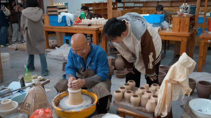 踏入高淳陶瓷博物馆,历史的厚重感扑面而来。馆内陈列的精美陶瓷,跨越千年时光,诉说着高淳陶瓷产业的发展脉络。从原始质朴的陶器,到工艺精湛、造型典雅的瓷器,每一件展品都是历史的见证者。同学们认真聆听讲解,深入了解陶瓷的制作工艺,从泥土的选择、塑形,到烧制过程中的火候把控,再到最后的装饰彩绘,无不惊叹于古人的智慧与技艺。为了更好地传播陶瓷文化,同学们以专业所学,现场进行脚本拍摄,准备用镜头语言,让更多人领略高淳陶瓷的独特魅力。