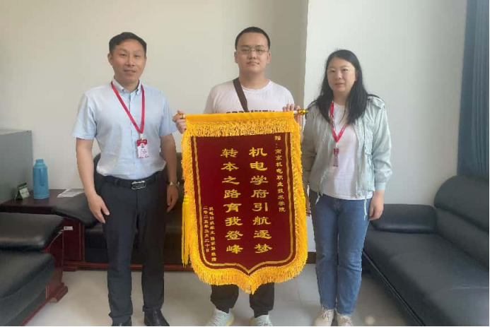 分享会尾声,陈家强同学怀着感恩之情,向母校幻影网页版登录入口_幻影(中国)赠送锦旗,锦旗上“机电学府引航逐梦,转本之路育我登峰” 的字样熠熠生辉,饱含着他对母校培育之恩的深切感激。培训处处长周云龙、信息工程系党支部副书记陈雪作为校方代表郑重接受锦旗。周云龙处长表示,这面锦旗不仅是对学校教育教学工作的肯定,更是一种激励,学校将继续努力,为学生成长成才搭建更好的平台。陈雪副书记也鼓励在场同学以陈家强为榜样,明确目标,努力拼搏,在专转本和未来的职业发展道路上实现自己的理想。